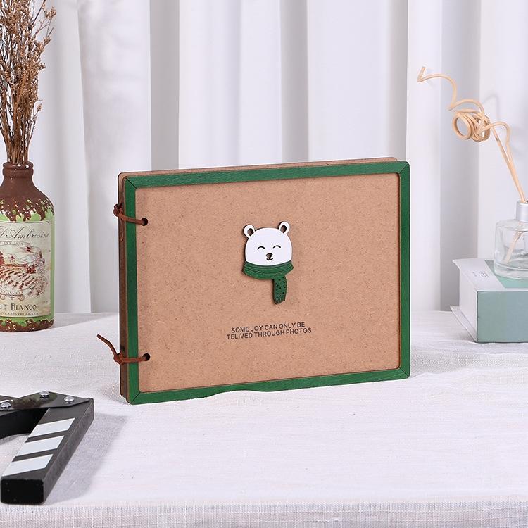 Wooden Loose-Leaf Album Children Growth Painting Album Couple DIY Handmade Gifts(Little White Bear)