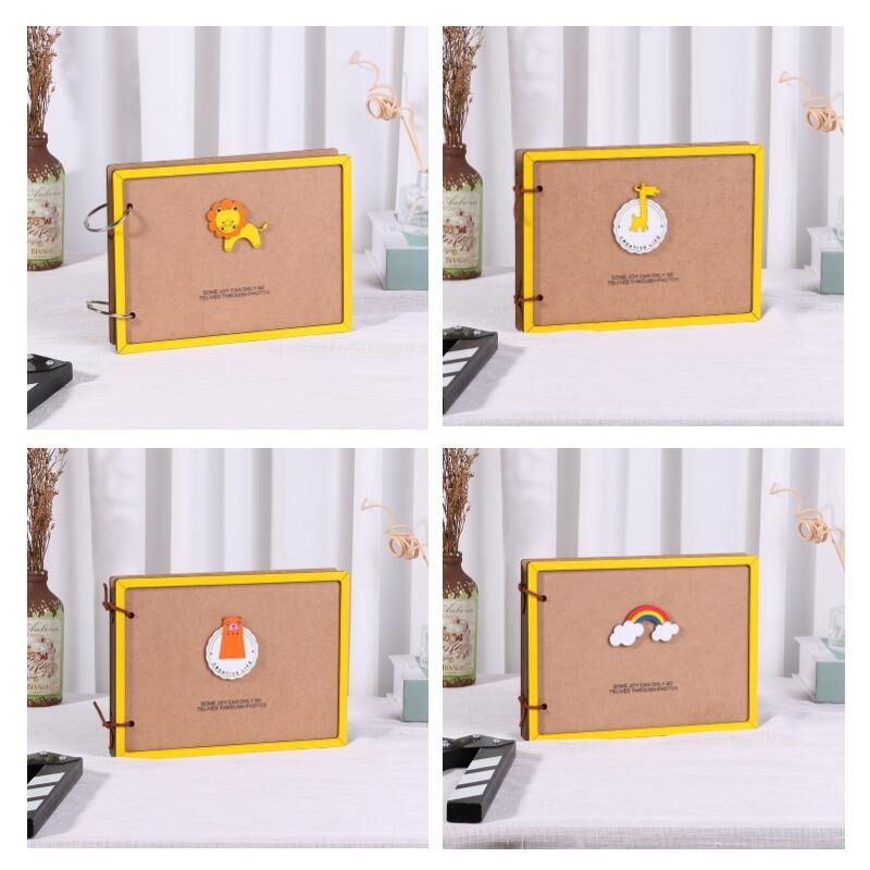 Wooden Loose-Leaf Album Children Growth Painting Album Couple DIY Handmade Gifts(Rainbow)