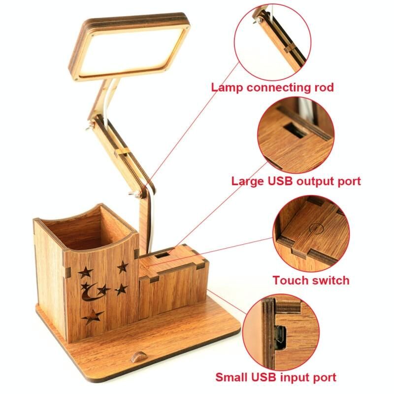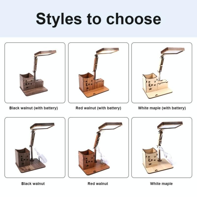 Ξύλινη πολυλειτουργική αφής USB κάτοχος στυλό επιτραπέζια λάμπα γραφείου Φοιτητής Επιτραπέζια Φορτιστική λάμπα ανάγνωσης οδήγησε προστασία των ματιών επιτραπέζια λάμπα, Στυλ:USB φόρτιση Ενσωματωμένη μπαταρία (Μαύρο)