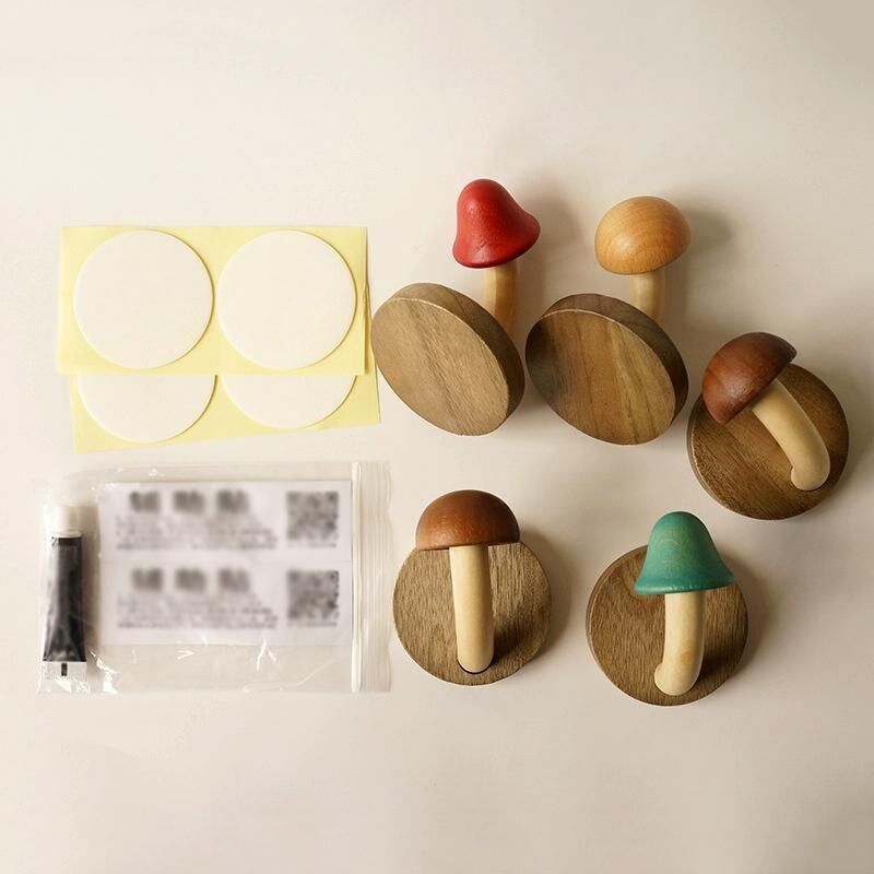 Ξύλινο μανιτάρι σχήματος Punch-Free Coat Hook Αρχική διακόσμηση αποθήκευσης Hook, χρώμα: Φυσικό στρογγυλό κεφάλι