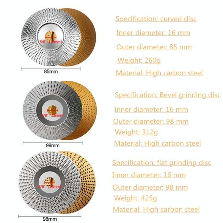 2. Διαστάσεις: επίπεδη εσωτερική διάμετρος 16 mm, εξωτερική διάμετρος 98 mm· καμπύλη εσωτερική διάμετρος 16 mm, εξωτερική διάμετρος 85 mm· λοξή εσωτερική διάμετρος 16 mm, εξωτερική διάμετρος 98 mm