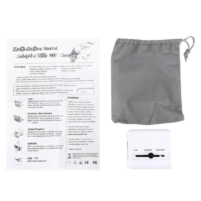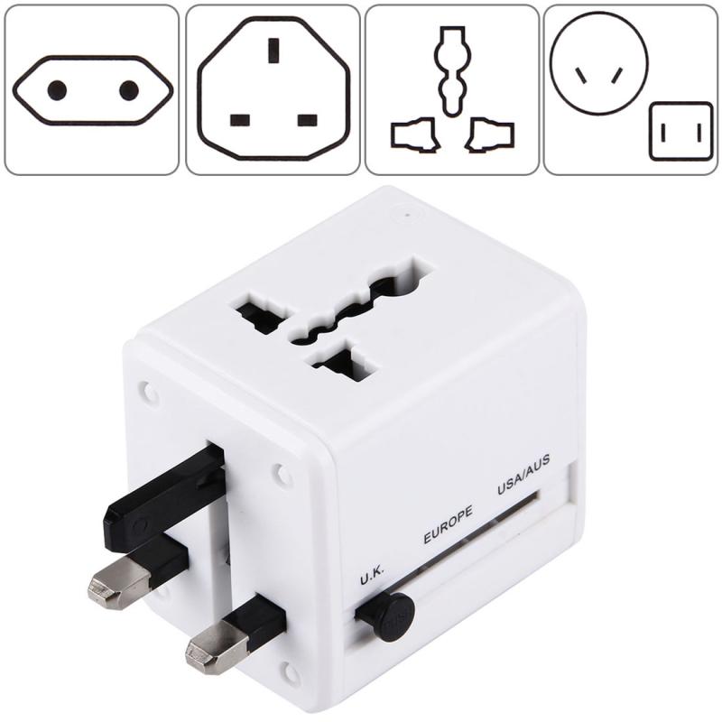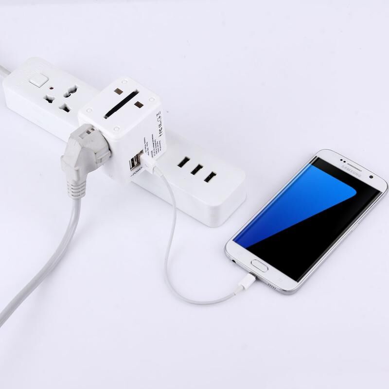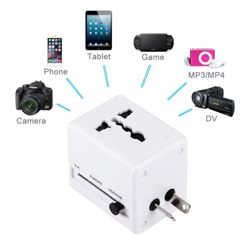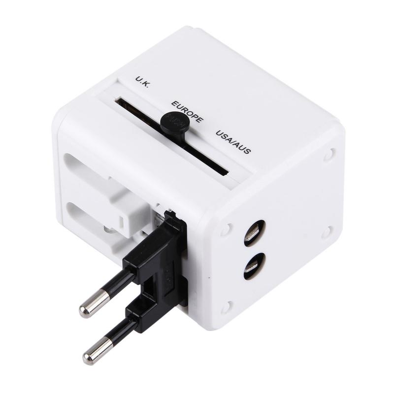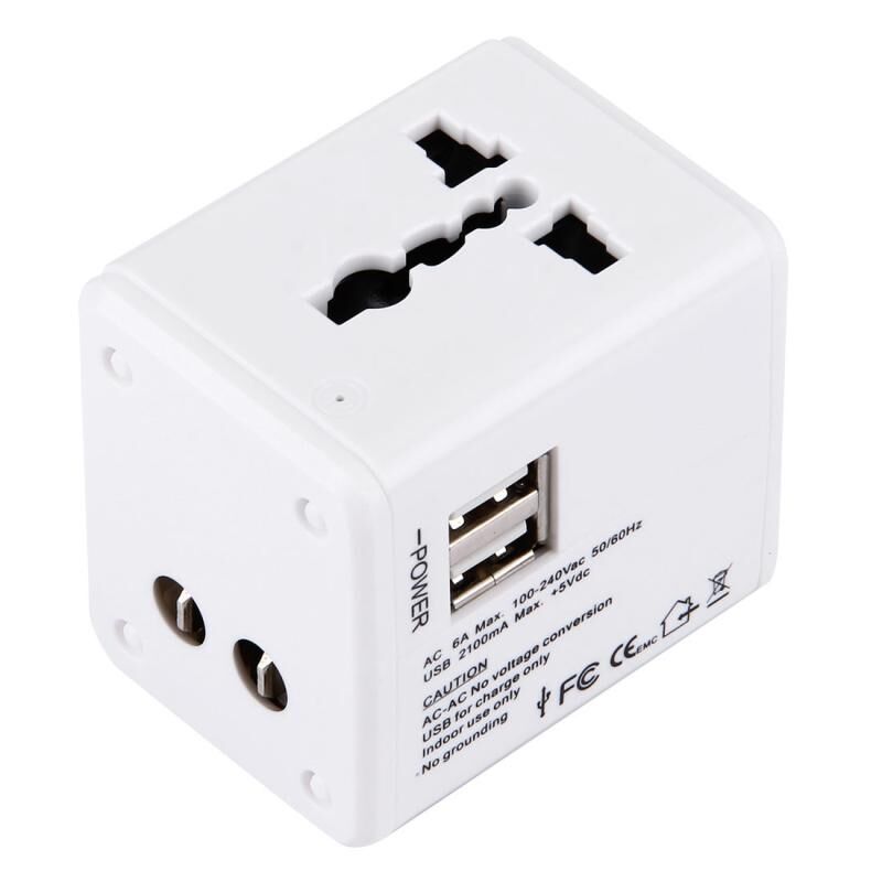World-Wide Universal Travel Concealable Plugs Adapter with & Built-in Dual USB Ports Charger for US, UK, AU, EU(White)