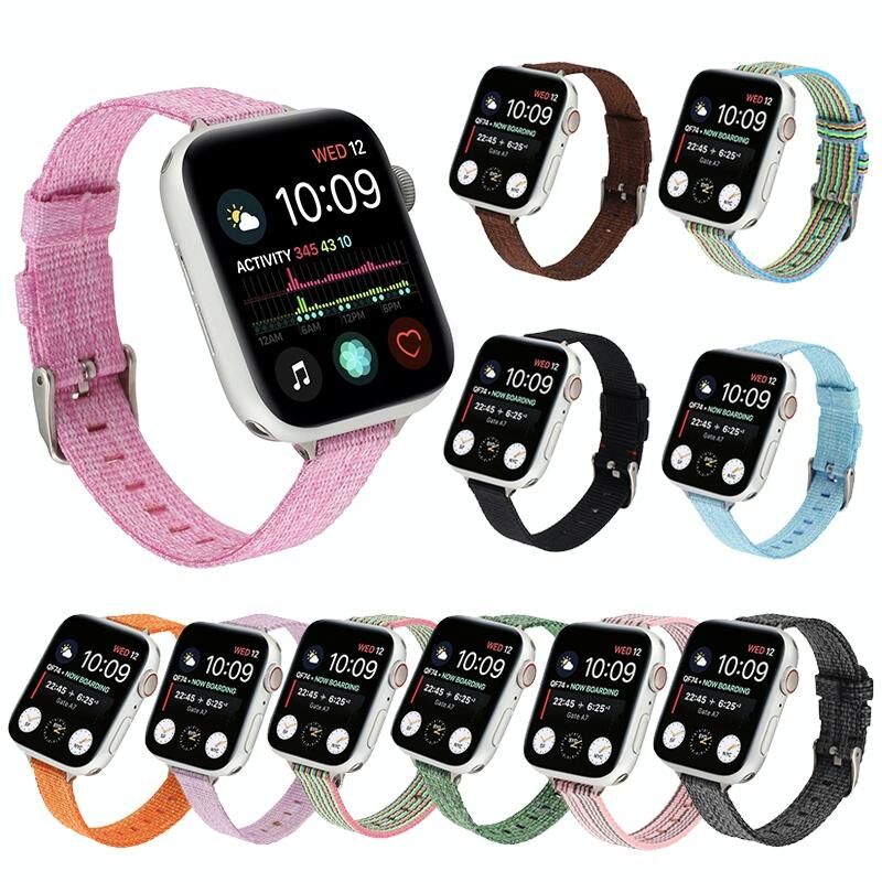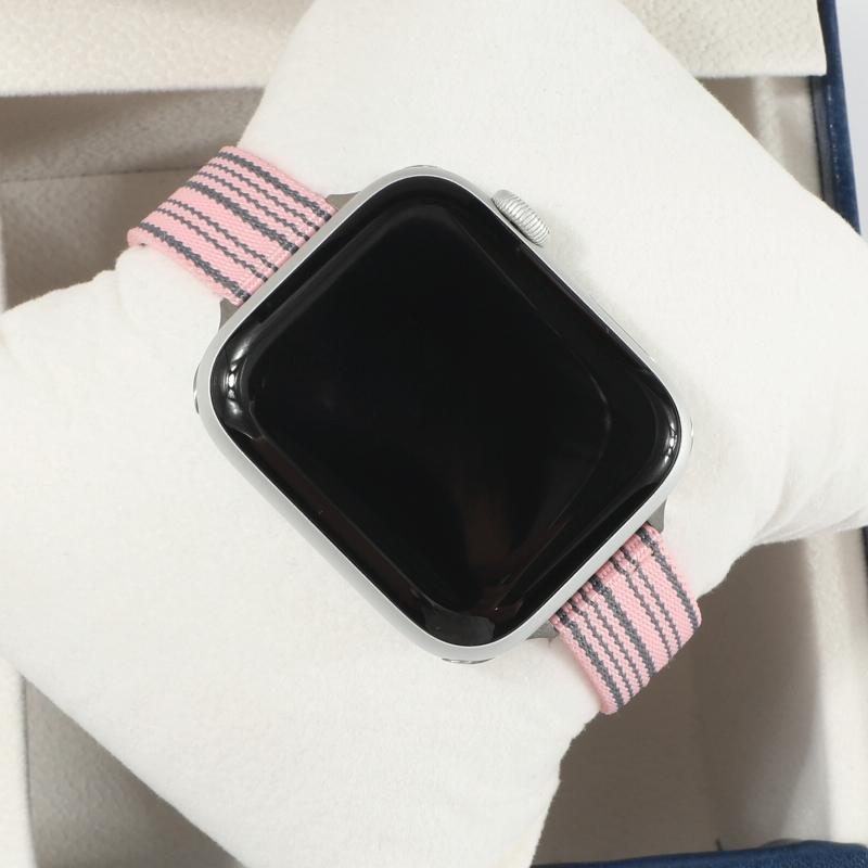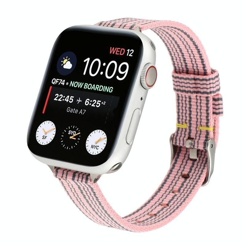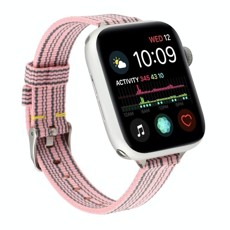 Woven Canvas Nylon Wrist Strap Watch Band For Series 7 41mm / 6 & SE & 5 & 4 40mm / 3 & 2 & 1 38mm(Pink Black)