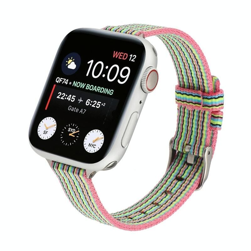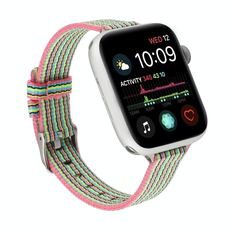 Woven Canvas Nylon Wrist Strap Watch Band For Series 7 41mm / 6 & SE & 5 & 4 40mm / 3 & 2 & 1 38mm(Pink Green)