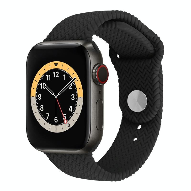 Woven Pattern Silicone Snap Watch Band For Apple Watch Series 7 41mm / 6 & SE & 5 & 4 40mm / 3 & 2 & 1 38mm(Black)
