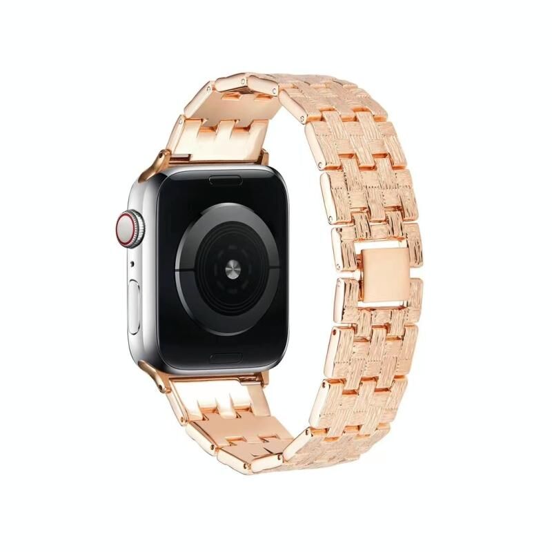 Λουρί για Apple Watch Ultra 49mm & Watch Ultra 2 49mm / Series 9 & 8 & 7 45mm / SE 3 & SE 2 & 6 & SE & 5 & 4 44mm / 3 & 2 & 1 42mm από ανοξείδωτο ατσάλι με υφαντή υφή (Ροζ χρυσός)