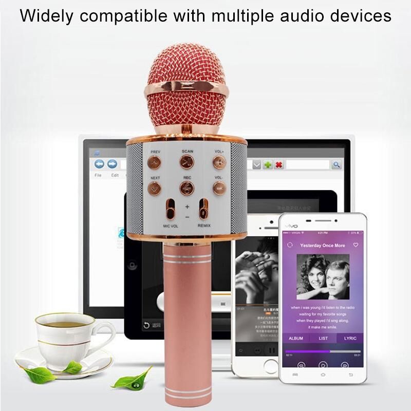 WS-858 Metal High Sound Quality Handheld KTV Karaoke Recording Bluetooth Wireless Microphone, for Notebook, PC, Speaker, Headphone, iPad, iPhone, Galaxy, Huawei, Xiaomi, LG, HTC and Other Smart Phones(Silver)
