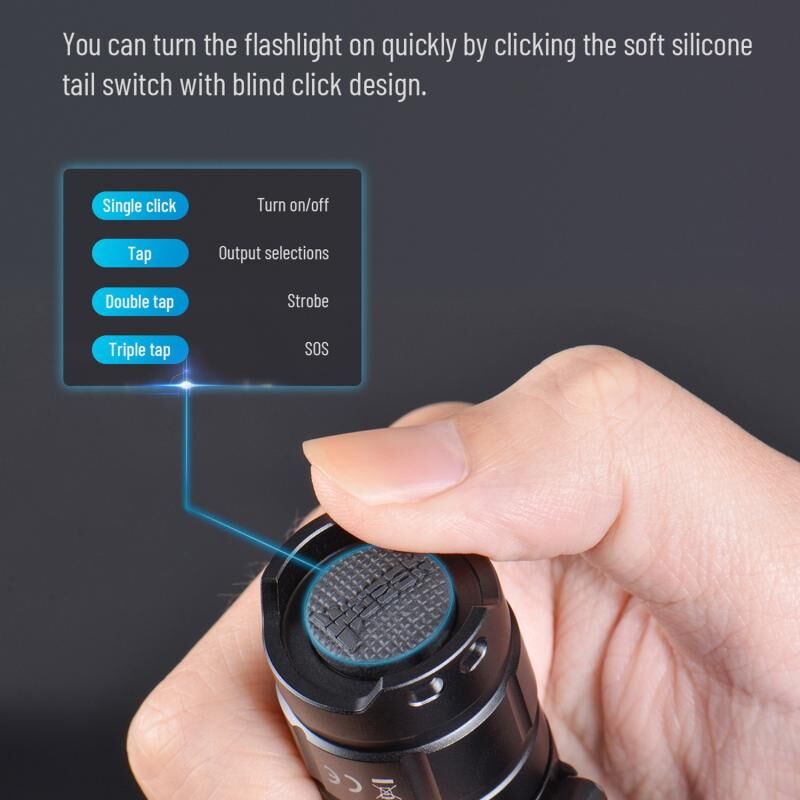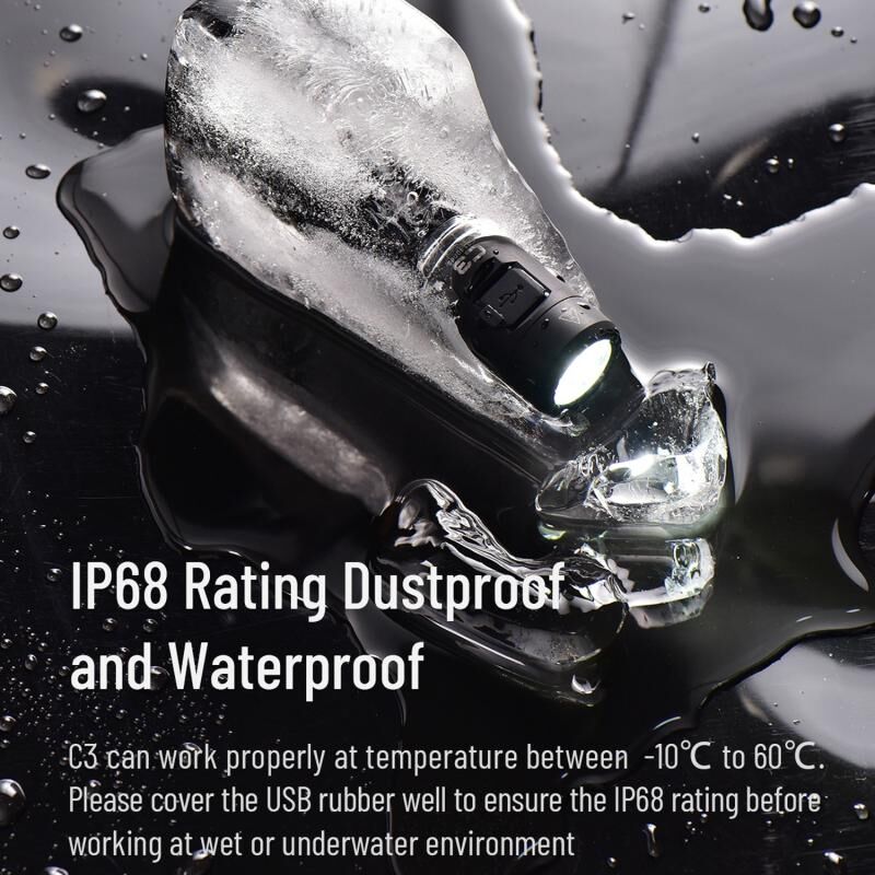 4. Το κύριο σώμα του φακού υιοθετεί κράμα αλουμινίου 6063 με σκληρή ανοδίωση. Η αδιάβροχη βαθμολογία IP68 και η αντοχή σε κρούσεις 1,5 μέτρων επιτρέπουν στον φακό να αντέχει σε δύσκολες συνθήκες.