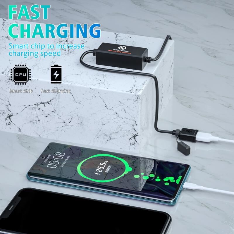 5. With self-adaptive function and built-in smart chip, it can automatically adjust the current output size according to the needs of electronic equipment. There is no need to worry about the current size. It can be intelligently charged with USB interface electronic equipment, such as mobile phones, cameras, driving recorders, and navigators. Wait, the SAE line is equipped with a 10A fuse, and the fuse can be replaced after it is burned.