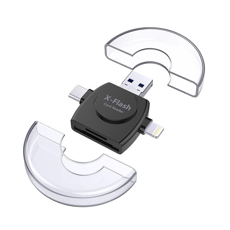 Αναγνώστης καρτών X-Flash R01 3 σε 1, 8 ακίδων + USB-C / Type-C + Micro USB (Μαύρο)