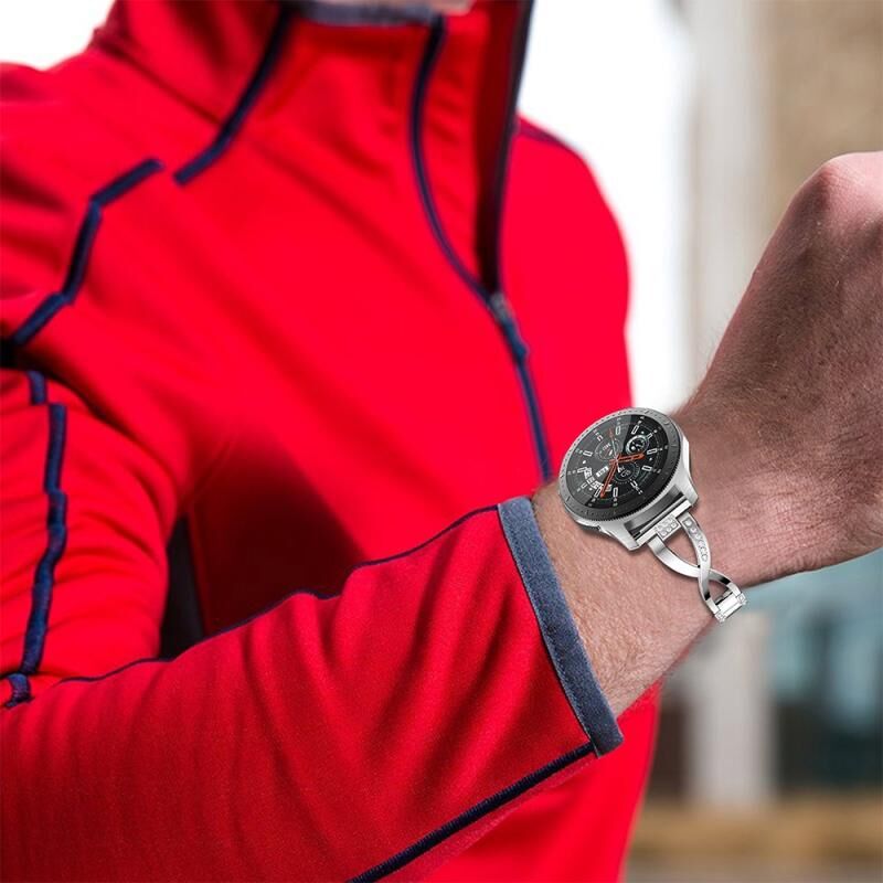 Λουρί ρολογιού από ανοξείδωτο ατσάλι σε σχήμα Χ, διακοσμημένο με διαμάντια, για Galaxy Watch 46mm (Μαύρο)