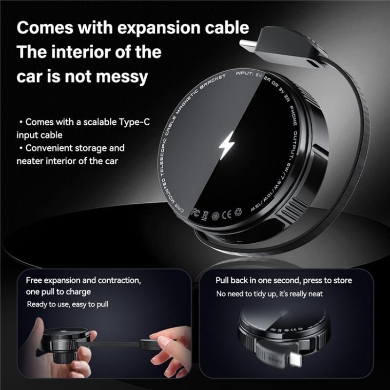 4.Extendable Cable:Includes a built-in 70cm retractable Type-C cable for convenient reach and tidy storage.