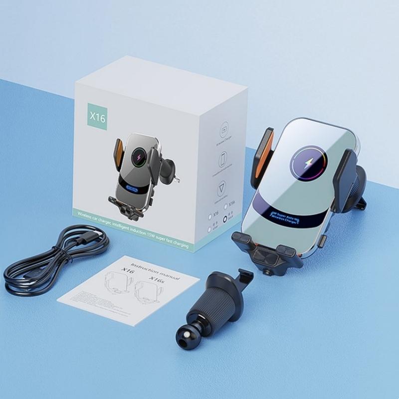 X16 Βάση Κινητού Αυτοκινήτου με Αισθητήρα & Ασύρματο Φορτιστή (Ασημί)