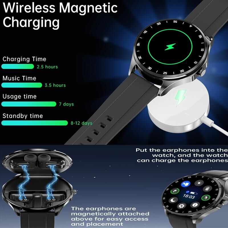 X20 1.43 inch IP67 Waterproof 2 in 1 Bluetooth Earphone Smart Watch(Black)