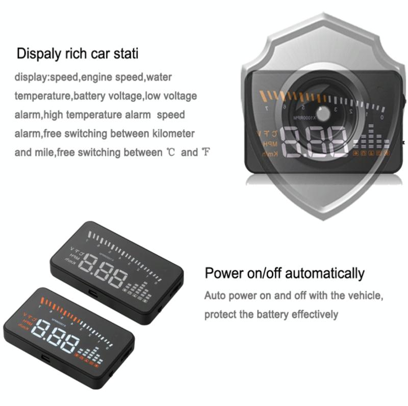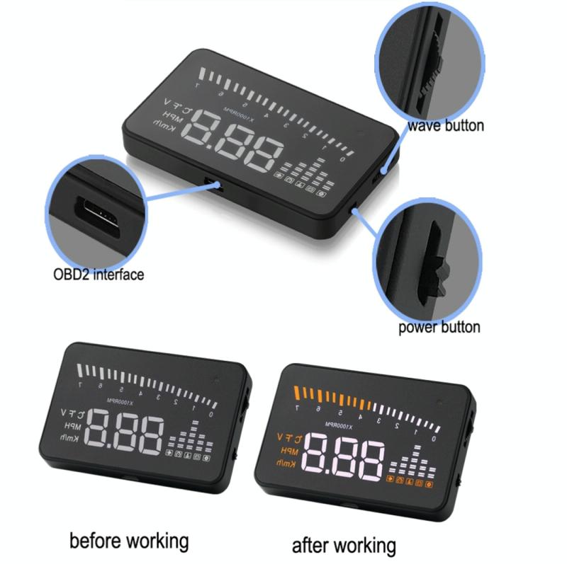 6. Auto power on and off with vehicle started and shutdown, effective protection of the car battery; while retaining the manual switch mode, and more easy to control HUD