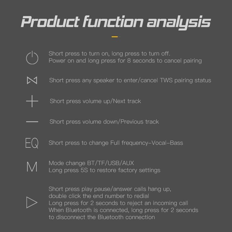 11. Play mode: support Bluetooth/audio cable/U disk/TF card