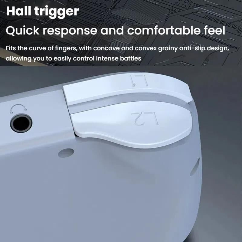 5. Hall trigger, fast response, comfortable feel, fit the finger curve, concave and convex granular anti-slip design, easy to control fierce battles