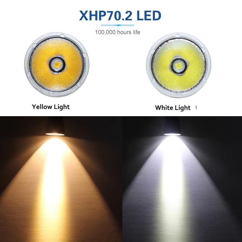 1. Χρησιμοποιεί 1 LED XHP70 δεύτερης γενιάς με διάρκεια ζωής περίπου 100.000 ωρών, φακό από μηχανικό γυαλί PC, πάχους 0,6cm και το περίβλημα είναι κατασκευασμένο από αλουμίνιο αεροπορίας και κατεργασμένο με ακρίβεια CNC. Η επιφάνεια είναι ανοδιωμένη για αντοχή στη φθορά. Ο δακτύλιος πίεσης από κράμα αλουμινίου προστατεύει αποτελεσματικά το βασικό μέρος της κεφαλής του φακού.