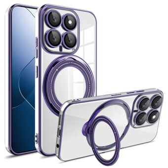 For Xiaomi 14 Pro Electroplating MagSafe 360 Degree Rotation Holder Shockproof Phone Case(Dark Purple)