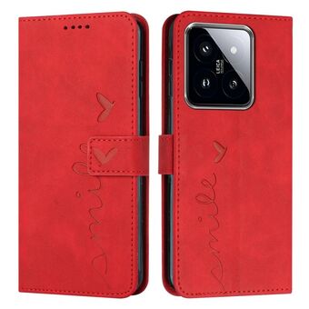 For Xiaomi 14 Pro Skin Feel Heart Embossed Leather Phone Case with Long Lanyard(Red)