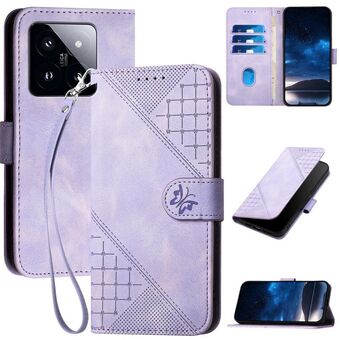 For Xiaomi 14 Pro YX0080 Grid Butterfly Embossed Pattern Leather Phone Case with Lanyard(Light Purple)