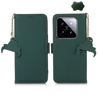 For Xiaomi 14 Pro Genuine Leather Magnetic RFID Leather Phone Case(Green)
