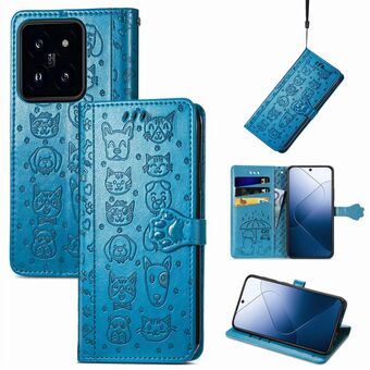 For Xiaomi 14 Pro Cat and Dog Embossed Leather Phone Case(Blue)