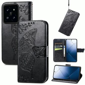 For Xiaomi 14 Pro Butterfly Love Flower Embossed Leather Phone Case(Black)