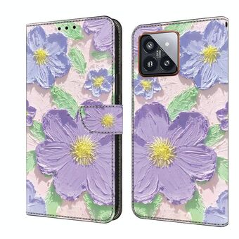 For Xiaomi 14 Pro Fresh Painted Leather Phone Case(Oil Painting Purple Flowers)