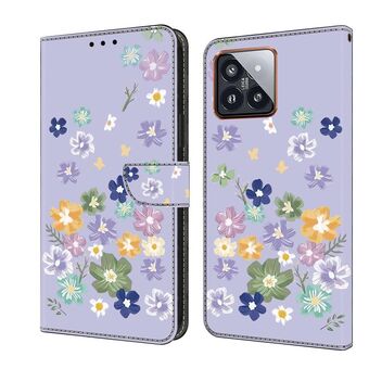 For Xiaomi 14 Pro Fresh Painted Leather Phone Case(Purple Floral)
