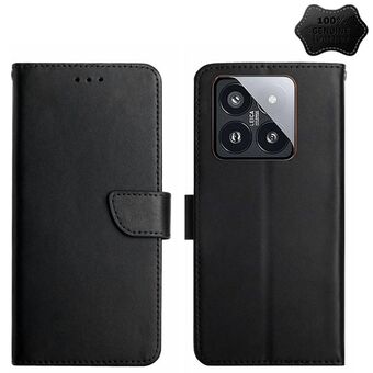 For Xiaomi 14 Pro Genuine Leather Fingerprint-proof Flip Phone Case(Black)