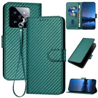 For Xiaomi 14 Pro YX0070 Carbon Fiber Buckle Leather Phone Case with Lanyard(Dark Green)