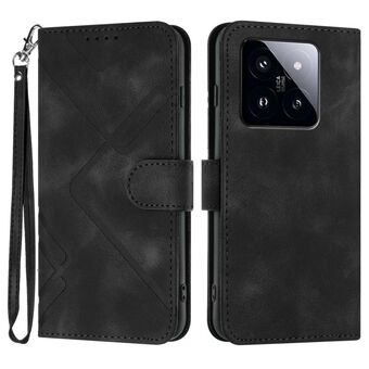 For Xiaomi 14 Pro Line Pattern Skin Feel Leather Phone Case(Black)