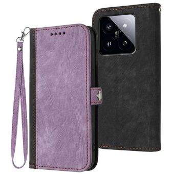 For Xiaomi 14 Pro Side Buckle Double Fold Hand Strap Leather Phone Case(Purple)