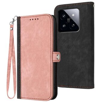For Xiaomi 14 Pro Side Buckle Double Fold Hand Strap Leather Phone Case(Pink)