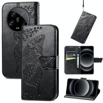 Θήκη τηλεφώνου από δέρμα με ανάγλυφο σχέδιο πεταλούδας και λουλουδιών για Xiaomi 14 Ultra (Μαύρο)