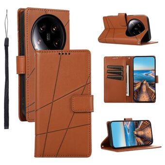 Θήκη τηλεφώνου Xiaomi 14 Ultra από γνήσιο δέρμα PU με ανάγλυφη υφή και λεπτομέρειες γραμμής (Μαύρο)