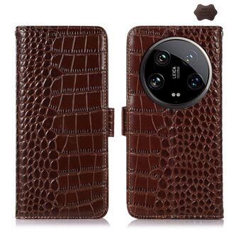 Θήκη τηλεφώνου από δέρμα αγελάδας με επικάλυψη κροκόδειλου για Xiaomi 14 Ultra (Καφέ)