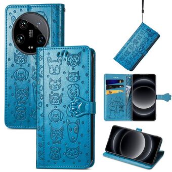 Θήκη τηλεφώνου από δέρμα με ανάγλυφο σχέδιο γάτας και σκύλου για Xiaomi 14 Ultra (Ροζ)