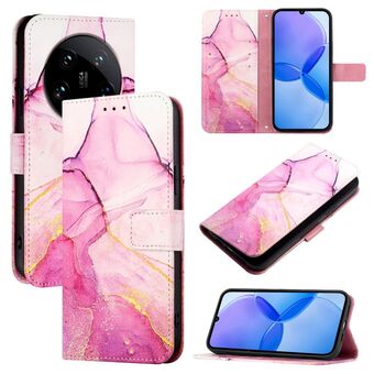 Θήκη τηλεφώνου από δέρμα με σχέδιο μάρμαρου για Xiaomi 14 Ultra PT003 (Ροζ Μωβ Χρυσό)
