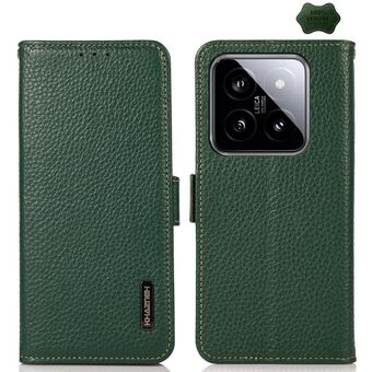 For Xiaomi 14 Ultra KHAZNEH Side-Magnetic Litchi Genuine Leather RFID Phone Case(Green)