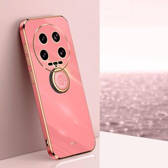 For Xiaomi 14 Ultra 5G XINLI Straight Edge 6D Electroplate TPU Phone Case with Ring Holder(Pink) (XINLI)