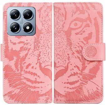 For Xiaomi 14T Pro Tiger Embossing Pattern Flip Leather Phone Case(Pink)