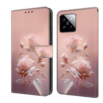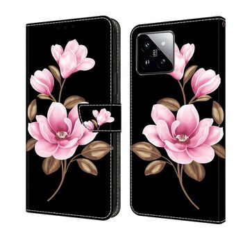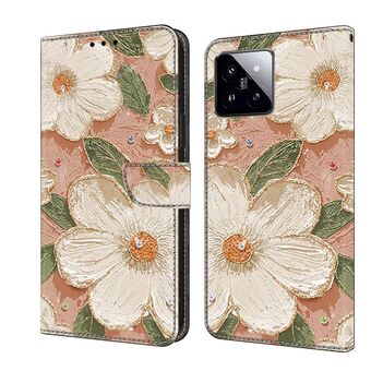 Θήκη τηλεφώνου από φρέσκο βαμμένο δέρμα για Xiaomi 14T Pro (Κεραμικά Λουλούδια)