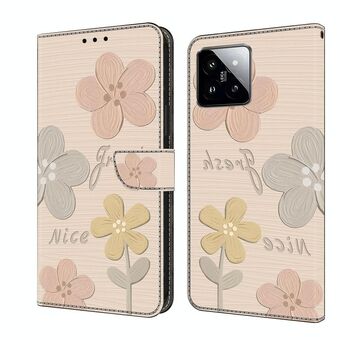 Θήκη τηλεφώνου από φρέσκο βαμμένο δέρμα για Xiaomi 14T Pro (Μπεζ Λουλούδια)
