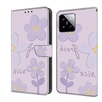 Θήκη τηλεφώνου από φρέσκο βαμμένο δέρμα για Xiaomi 14T Pro (Μωβ Λουλούδια σε Λαδομπογιά)