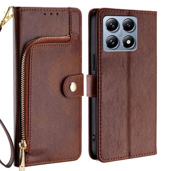 Για Xiaomi 14T Pro 5G φερμουάρ τσάντα δερμάτινη θήκη τηλεφώνου (καφέ)