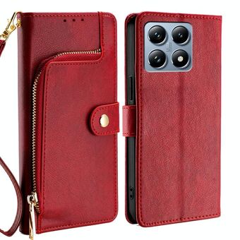 Για Xiaomi 14T Pro 5G φερμουάρ τσάντα δερμάτινη θήκη τηλεφώνου (κόκκινο)