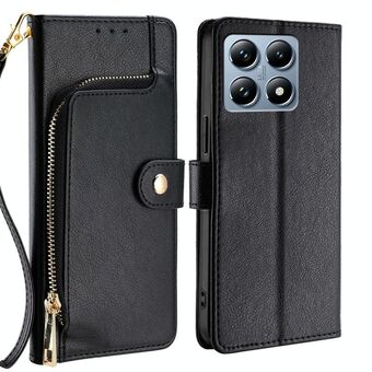 Για Xiaomi 14T Pro 5G φερμουάρ τσάντα δερμάτινη θήκη τηλεφώνου (μαύρο)