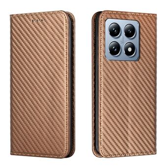 Για Xiaomi 14T Pro Carbon Fiber Texture Μαγνητική Flip δέρμα τηλέφωνο υπόθεση (καφέ)